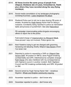 This is on top of the 2 arrests by Hugh Harrop for trivial things, 19 hours in a holding cell both times. Plus he sent Shetland police on a 50 mile round trip to tell me not to share FB of whales.