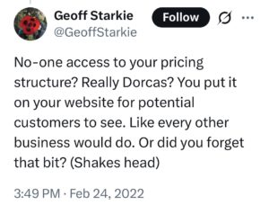 No one had access to my financial accounts or client data or day to day business so for complete strangers with no access to my business to actually state I went bust or the business collapsed is absolute rubbish. This is a blocked fake profile stalking my business pages. There is a difference between advertising prices and a pricing structure and nothing to do with anyone other than the business owner.