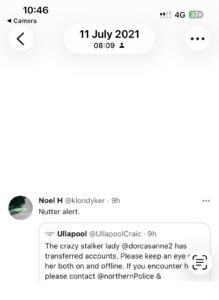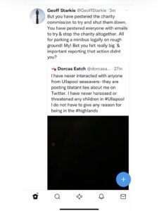Ullapool screenshots. There is and was no evidence of stalking, harassment, abuse or threatening behaviour in Ullapool (PIRC). Any posts that says so is libellous.