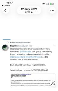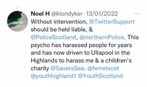 They post things like below but when they get called out on these they go crying to the Police with false allegations and fake charges which get passed to PF without any involvement with me. No investigation just pushed through over and over again. There is no fairness or impartiality given to me by Police Scotland. I have not been able to put in any counter complaint in 11 years.