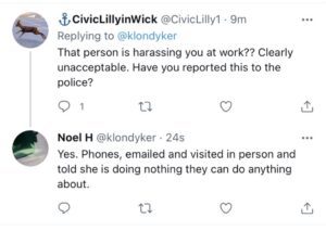 Police see my name in tags and think I was part of a conversation. I wasn’t. That was the illusion they wanted to give because they wanted me to see the abuse. They know I do searches on my name and registration number for my own personal safety. It’s all one sided.