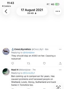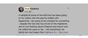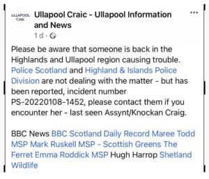 These are all public posts in no particular order. I have never encountered any of these people in Ullapool. The fake profiles that were nothing to do with me are here see shambolic trial here. A lot of the posts below were reposted many times.