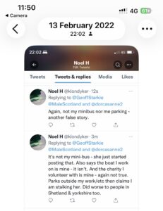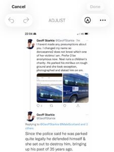 when I legally contacted OSCR because the charity are conducting a hate campaign against me, this is how it is framed with use of further irrelevant information. One day he claims he’s driving the school bus and I reported him to the police. At no point did I report him to the police andthe next day he claims he’s wasn’t the driver of the school bus.