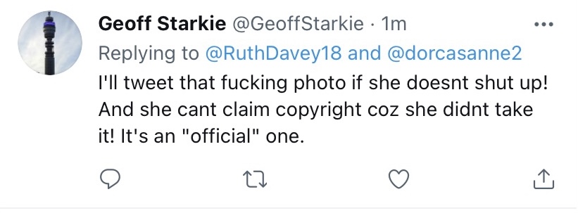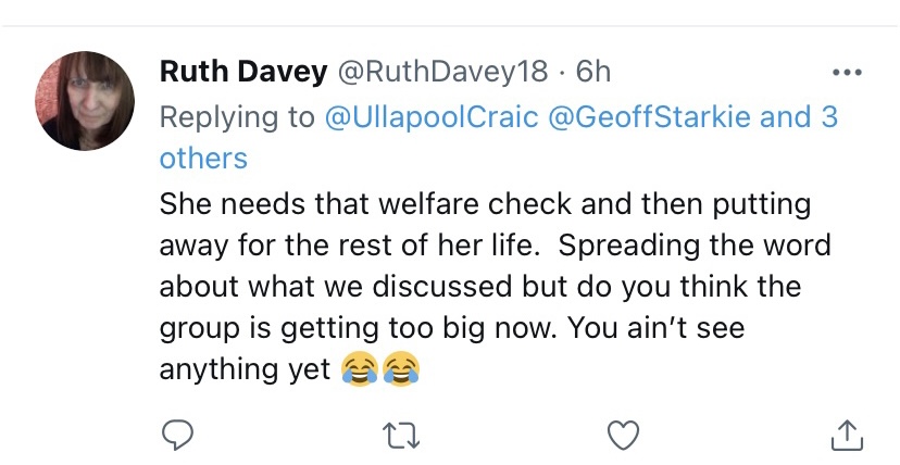 For 2 years she has been told to stop. She’s had a cease and desist letter yet she keeps spreading lies and trying to incite more hate against me. Ruth Davey has reported me to the police. Sometimes she insists she hasn’t or says she calls the police to shut me up.