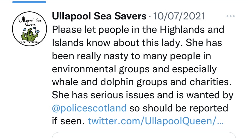 So 2021 Ullapool Sea Savers, Ullapoolseasavers, USS, Noel Hawkins Klondyker tour guide on Shearwater (Summer Queen) Cruises, Noel Hawkins klondyker link to shambolic trial Ullapool Noel H @klondyker, Ullapool Craic (again Noel H) @ullapoolcraic, posts my confidential information to Ullapool Sea Savers publicly online to the profile of the charity Ullapool Sea Savers, then publicly posts my home details online.