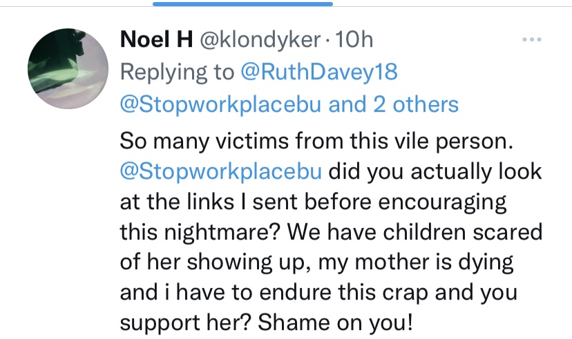 Lets translate this ’had a go’. I stated that ruth davey stop stalking and harassing me many times about 2 years ago.