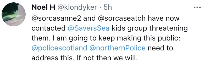 Noel Hawkins klondyker has reported me to anyone and everyone else including Maree Todd MSP who supports them, Shearwater cruises and Ullapoolseasavers, apparently even though they are: