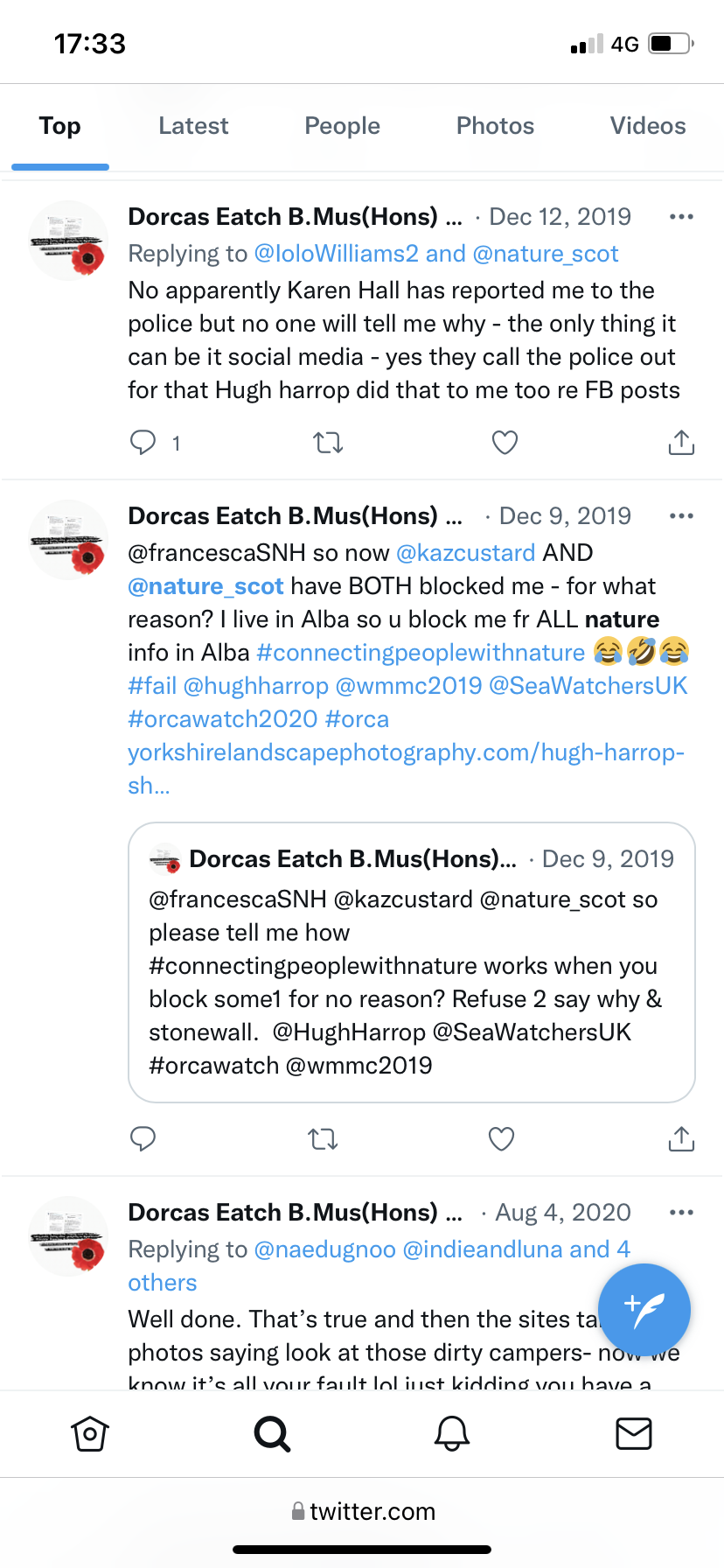 Nature.scot block/unblock people from their system rather than using a complaints procedure as I’m not the only one.
