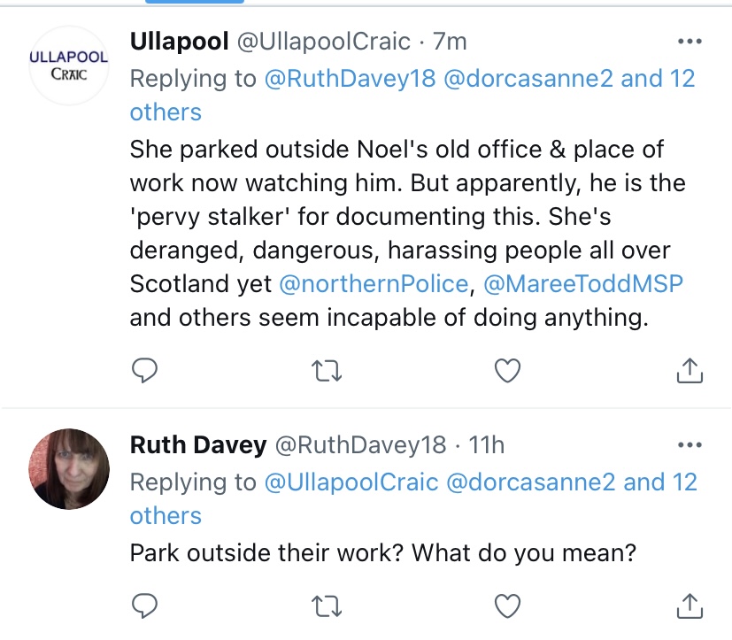 Noel Hawkins (@klondyker @ullapoolcraic Shearwater Cruises ) Ullapoolseasavers and Ruth Davey (Watts) @ruthdavey18 are trying to get me sectioned as well as arrested through public posts online. Apparently they have professional psychiatric qualifications and can diagnose without actually meeting anyone, just rely on hearsay and gossip